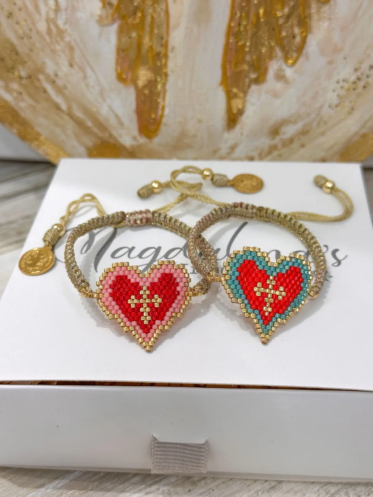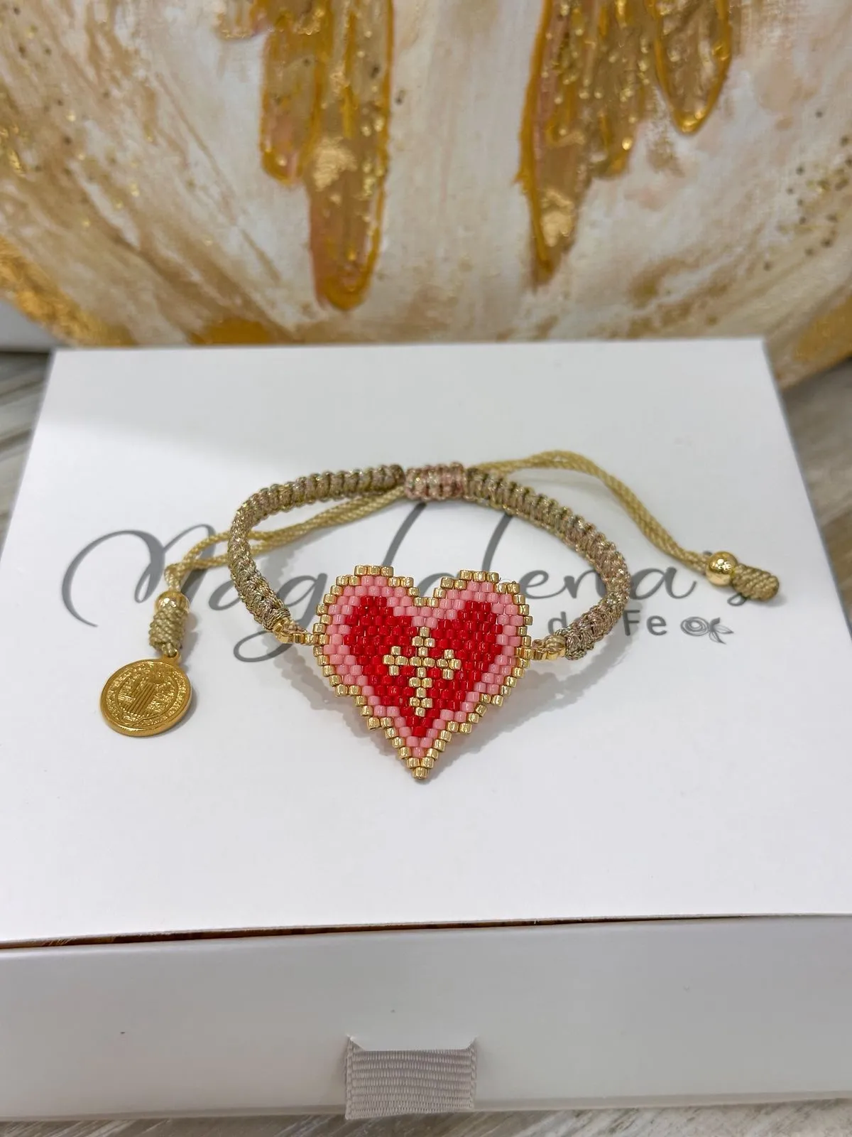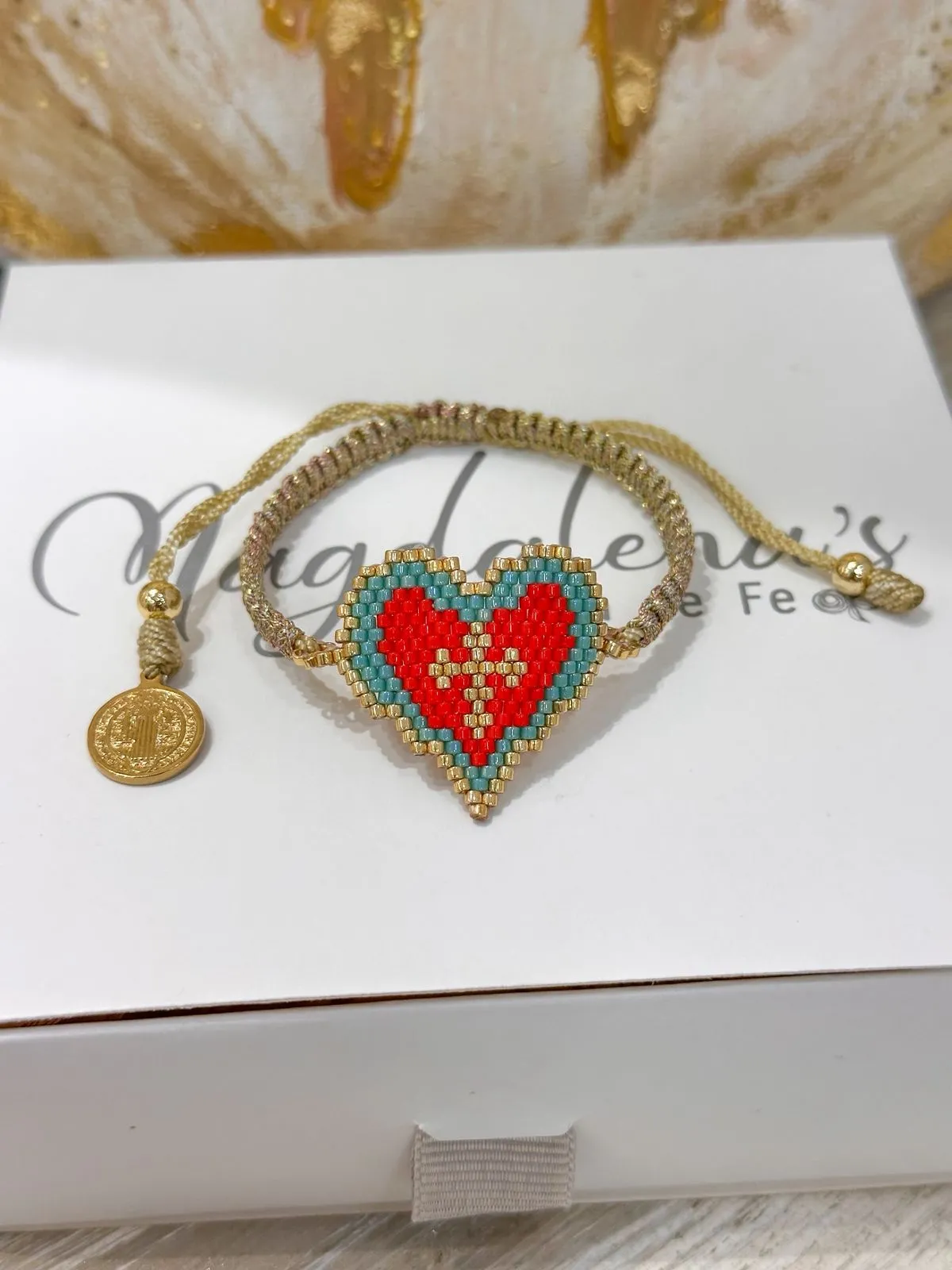 Manilla del Sagrado Corazón de Jesús con medalla de San Benito ✨
