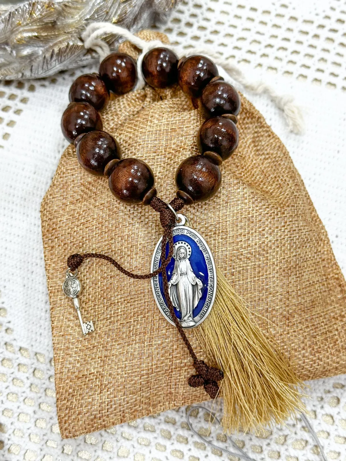 Ideal para colgar en la puerta de la casa y/o habitaciones. Medallón en alpaca italiana de la Medalla Milagrosa de 4cm x 2.5cm, llave de 2cm