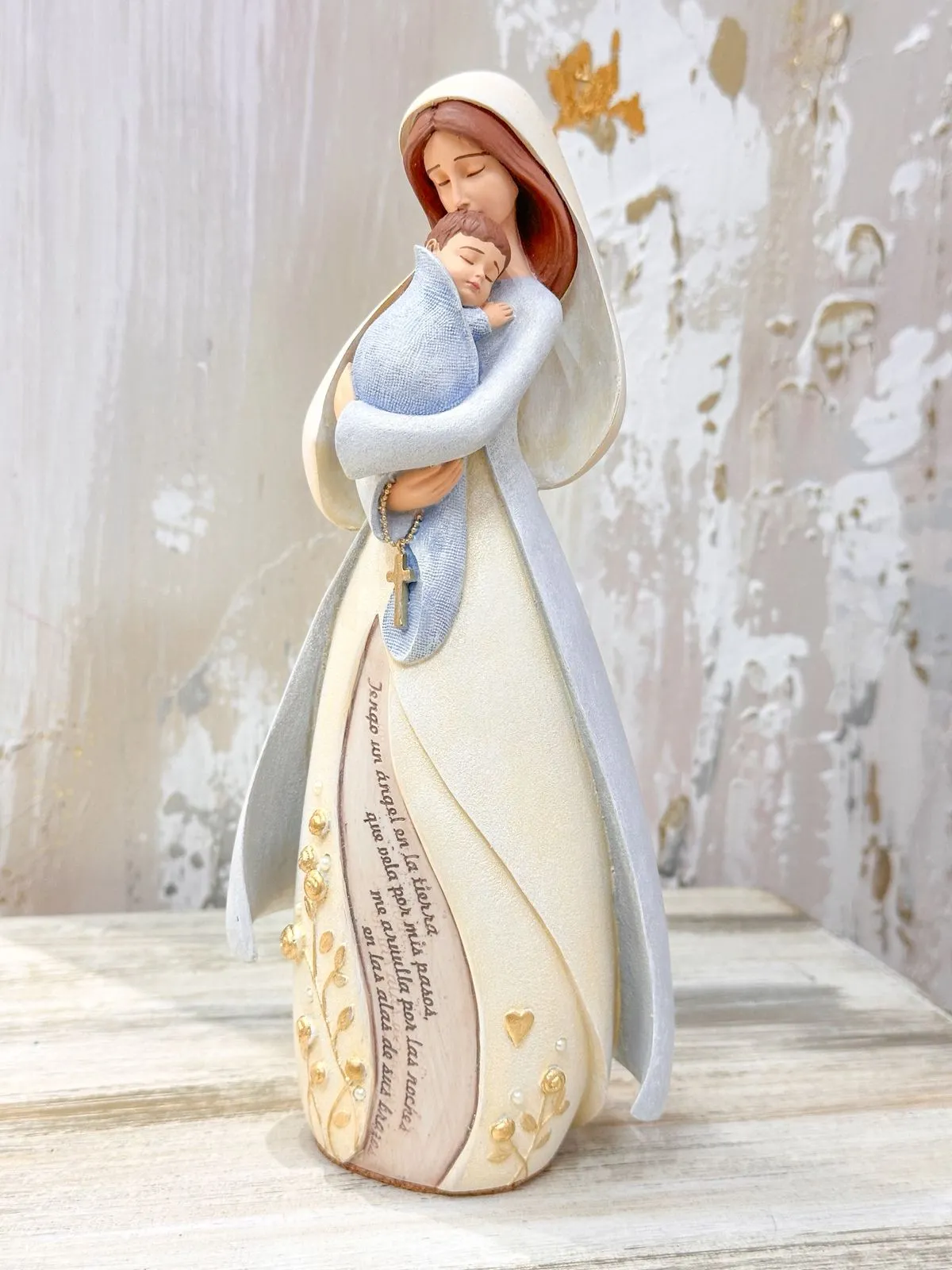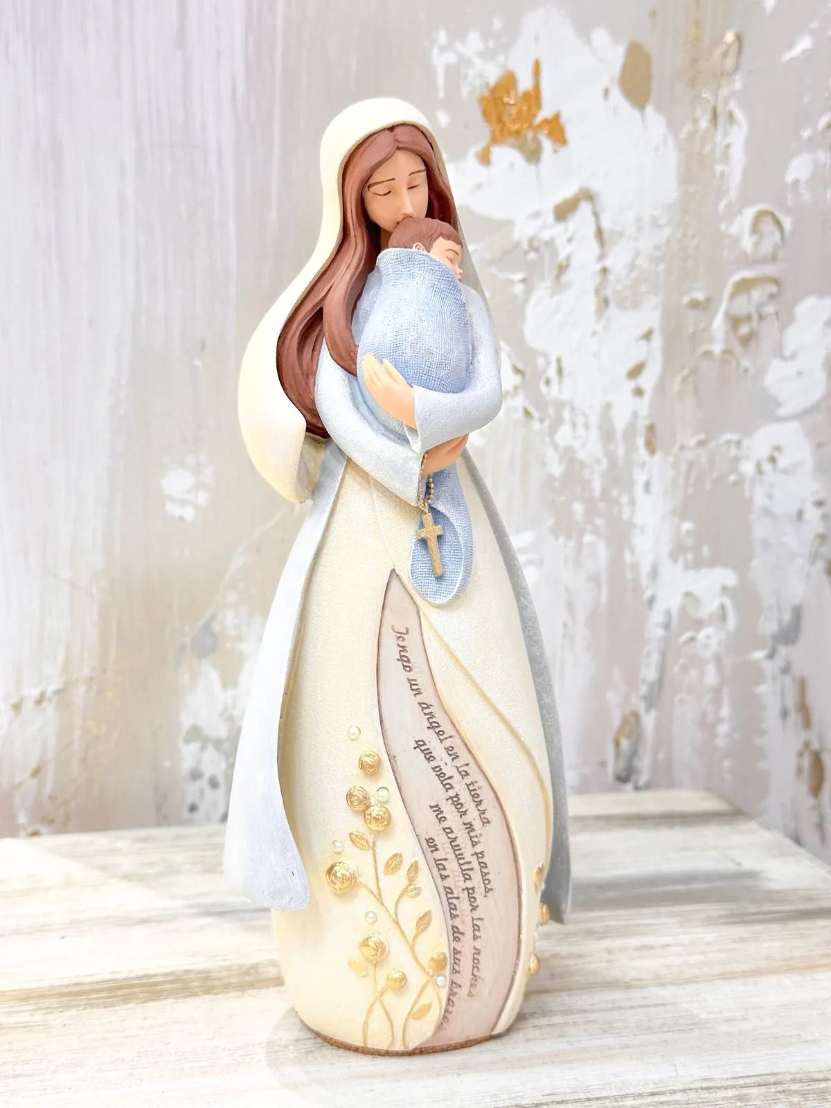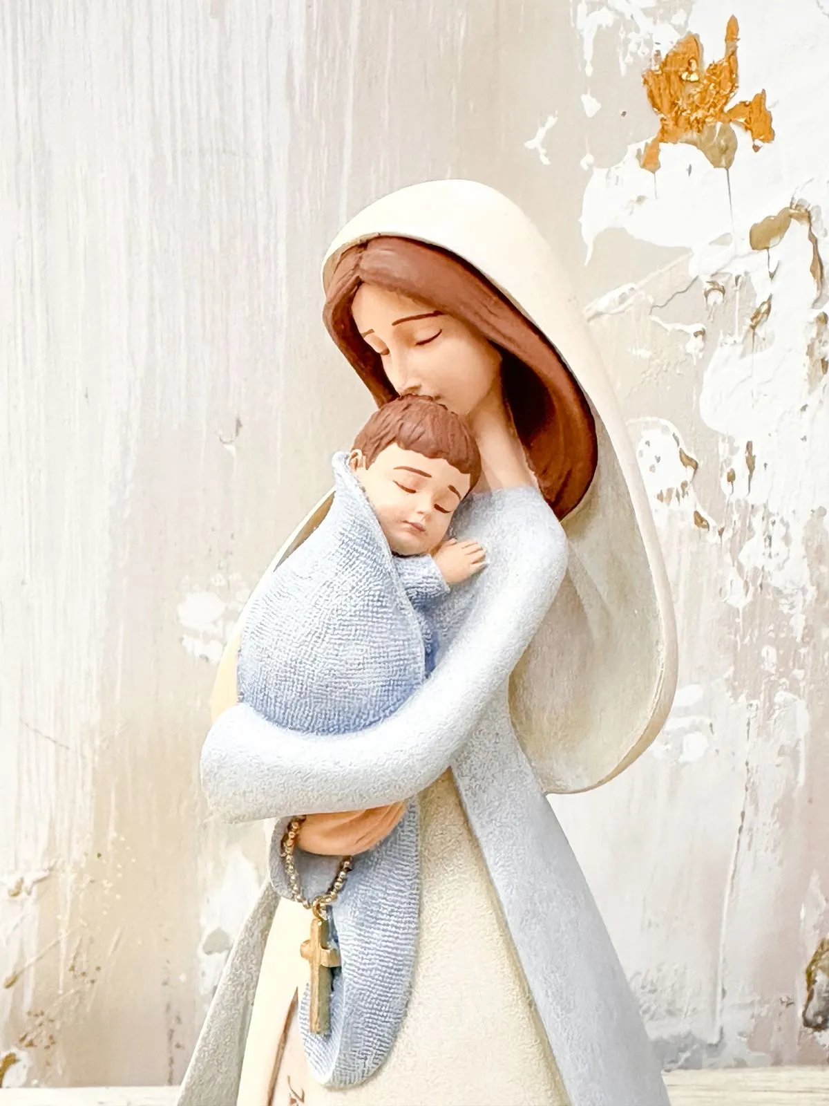 Una figura que transmite paz, consuelo y amor maternal. Representa a la Virgen María abrazando al Niño Jesús con ternura infinita, recordándonos el poder del amor que protege, acompaña y sostiene.