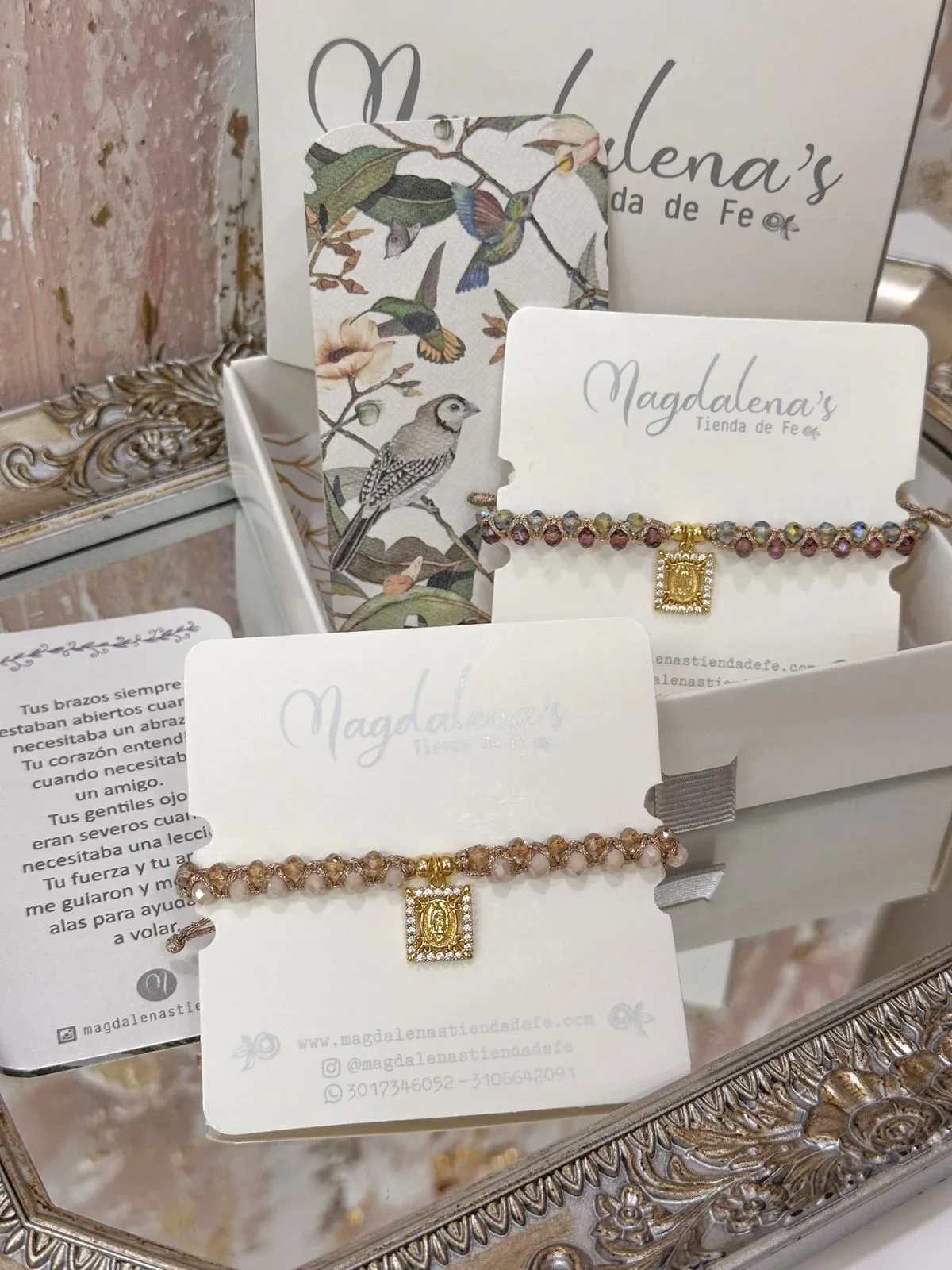 Esta pulsera no es solo un símbolo de devoción, es una declaración de amor a María. Perfecta para regalar en fechas marianas, a madres, hijas o amigas que saben que tenerla cerca es sentirse en casa.