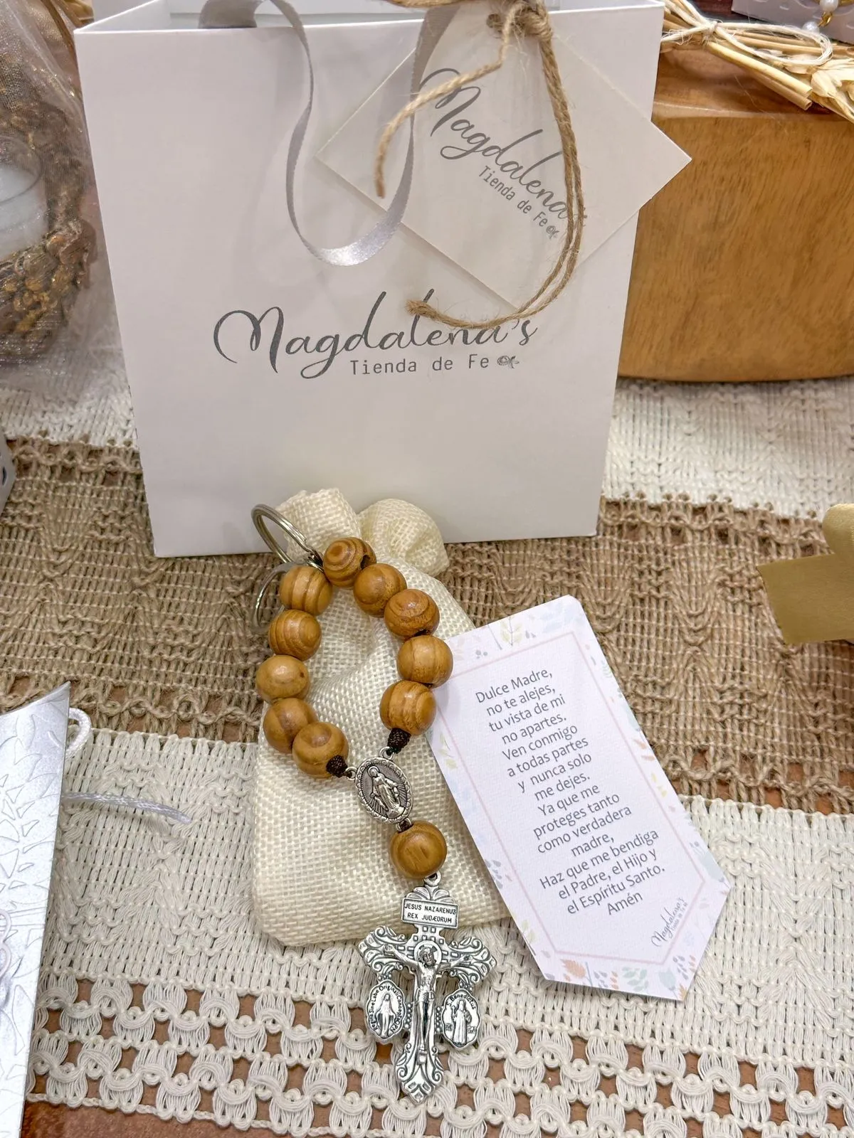 Nuestros llaveros denarios son más que un accesorio; son un recordatorio constante de la presencia de Dios en tu día a día. Perfectos para acompañarte en tus oraciones, encontrar paz en los momentos difíciles o simplemente sentirte más cerca de tu espiritualidad. Cada pieza está diseñada con amor, combinando significado y belleza, para que siempre tengas un símbolo de fe al alcance de tu mano.