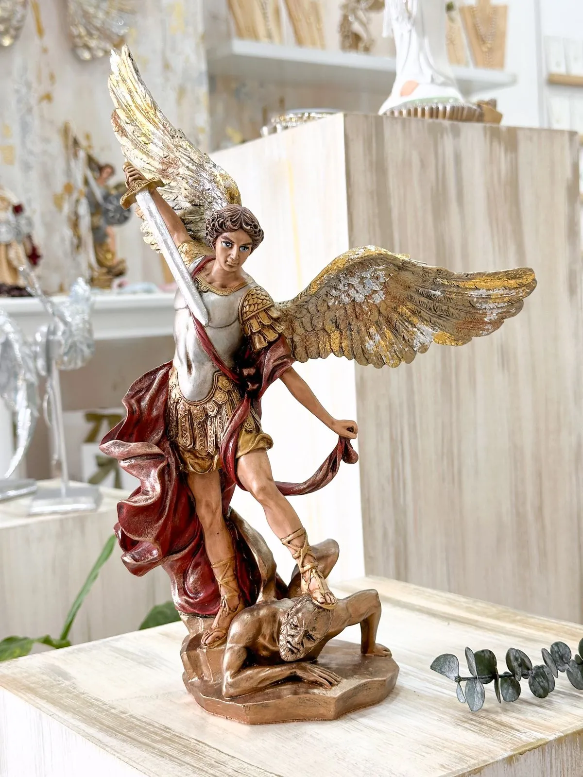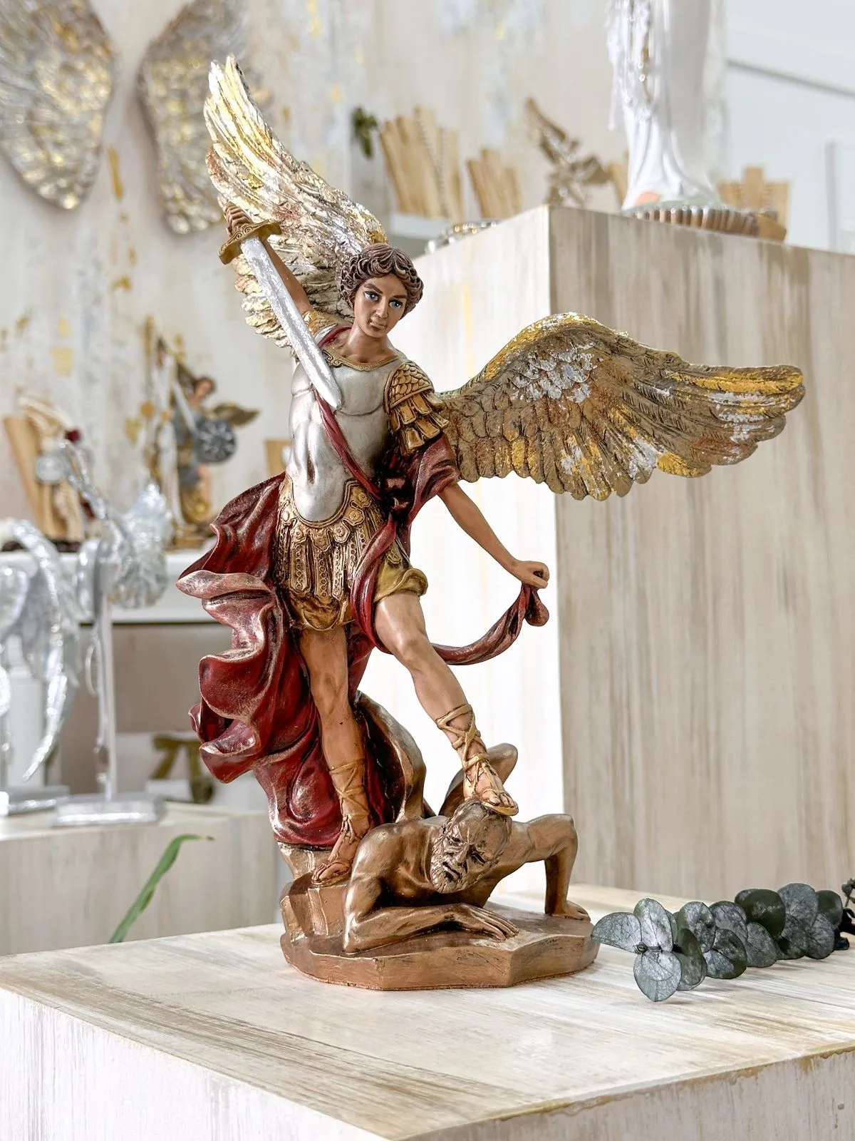 Elaborado en marmolina, material ideal para poner en interiores y exteriores.