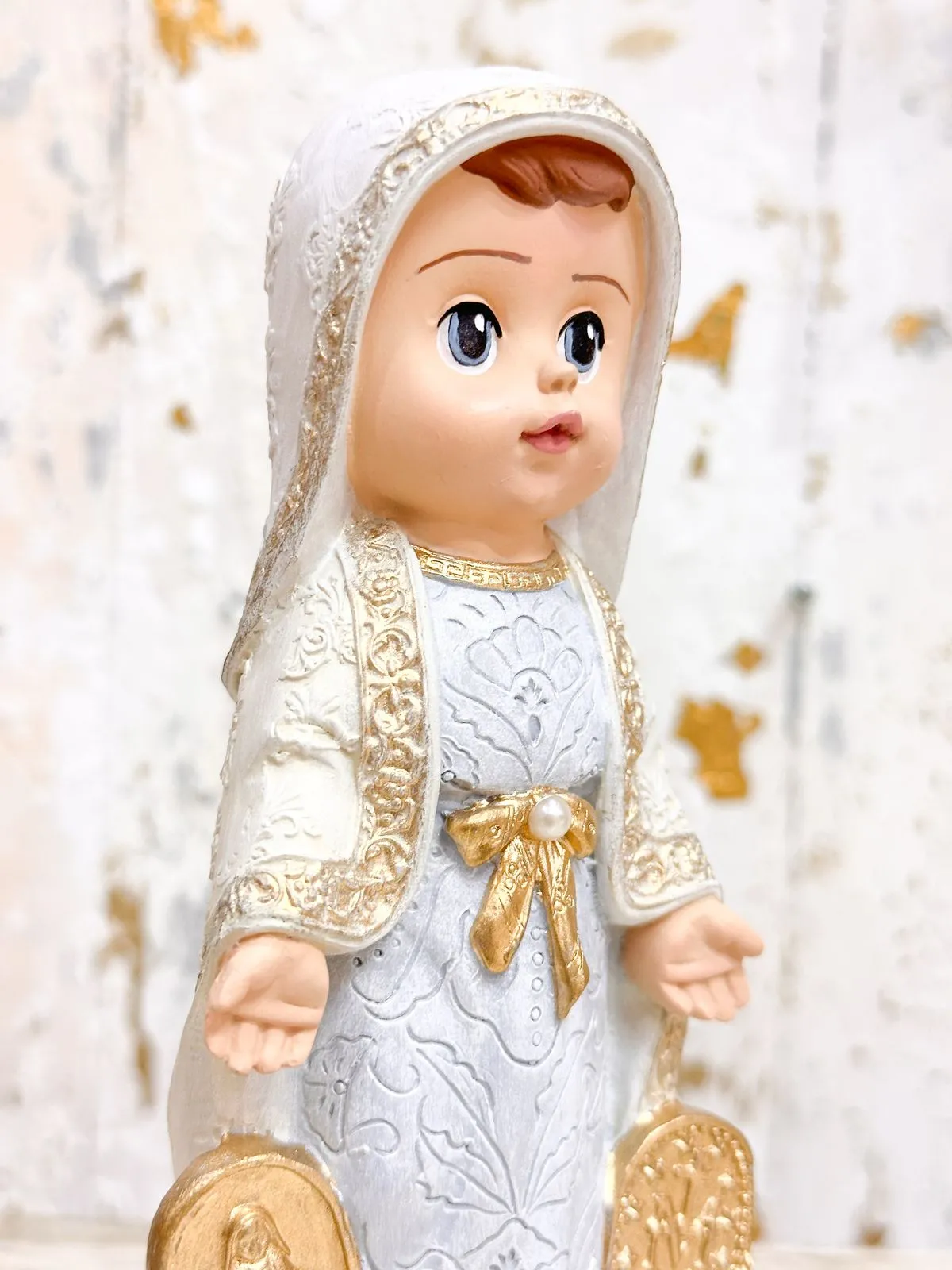 María, desde pequeña, fue elegida por Dios y cuidada con amor. En esta versión niña, nos inspira a confiar como niños, a vivir con esperanza y a creer en la fuerza de la oración.